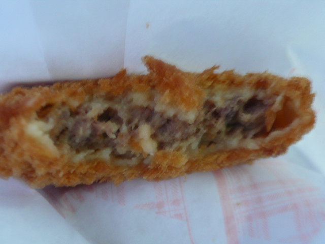 離開之後就往輕井澤出發囉,東京市區真的很塞,在快速道路上塞了一個多小時吧,還滿誇張的(不過也可能是因為星期五),總之,抵達輕井澤的時間比預期晚了兩個小時,舟車勞頓是件很累的事情呀...不過高速公路上休息站賣的東西也還滿有趣的,牛肉可樂餅,沒吃過吧?熱騰騰的超好吃的啦~