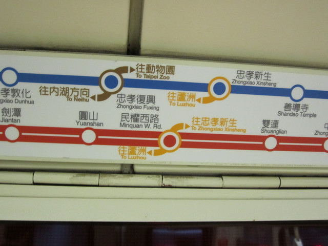 下課後就馬上衝去搭捷運啦!一路上都在跑就怕錯過捷運又要等5分鐘...不過很幸運都沒有等到。不過要下車前仔細端詳了一下車內的營運圖,第一次注意到新的版本...車內廣播也已經換了,Monitor有顯示轉搭蘆洲線的資訊。(該不會是我lag太多吧?)