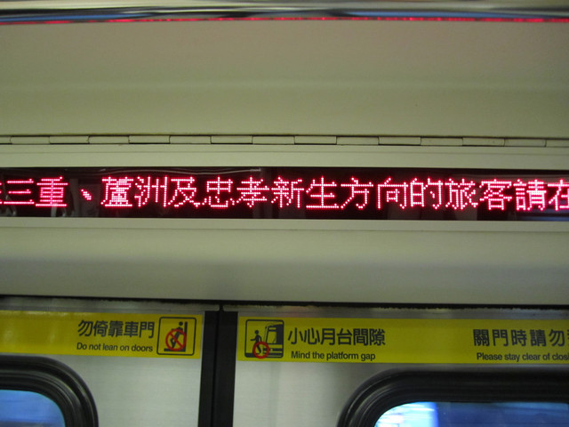 突然發現沿途我好像又沒照什麼...倒是有錄列車廣播的影片(忠孝新生的太大沒辦法放上)。關於列車廣播的部份感覺跟高捷有點像,是由不同人錄的。不過不像文湖線一開始的廣播錯誤百出,我覺得這個聽起來專業很多!不過最專業的,還是板南線、淡水線上播的啦,聽幾次都不會膩XD(好像有點病態 = =+)