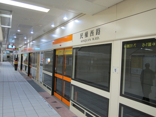 蘆洲線全線都有加裝月台門,是全罩式的。不過感覺塑膠感非常的重...我個人喜歡高捷的金屬感XD