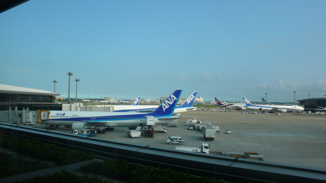 切回正題...第一次在第一航廈辦理手續,一進航廈看到的是大片落地窗,當然也就可以看到飛機啦!不過一望出去,看到的大多是ANA和UA的飛機,南翼這邊果然還是星空聯盟的大本營...