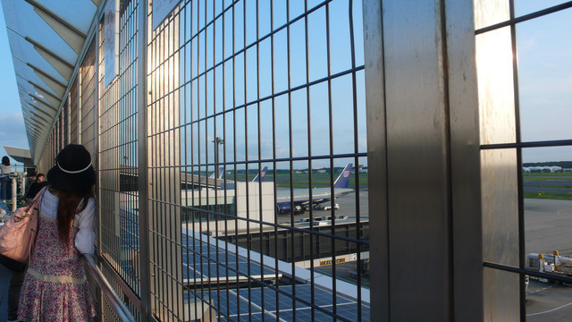 好不容易辦妥登機手續,準備要衝五樓的瞭望台及賣店了。五樓有很多地方有門可以到瞭望台,不過有志到瞭望台賞機的人建議還是可以先查一下航班,不然能看到的只有一堆Delta和UA。另外,瞭望台有鐵絲網,但使用相機的人還是可以找比較大的空隙來拍機唷!