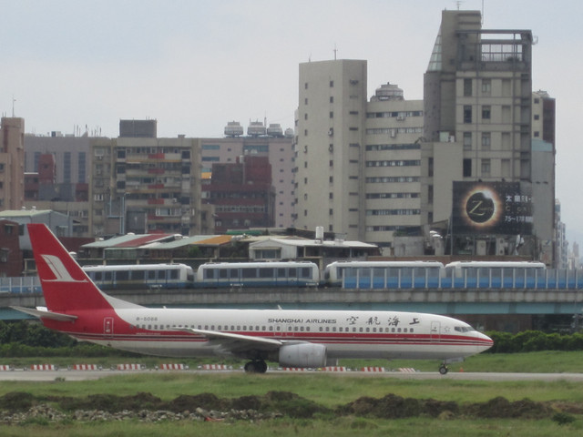 其實起床的時間已經有點晚了,早就已經錯過JL031的落地啦!只能望著JA612J還有早就已經抵達的B-18353停在遙遠的國際線新停機坪...沒多久,上航的B737-800執行FM802班機要回上海囉!機頭的星空聯盟標誌還在,不過再一段時間之後就要說掰掰啦