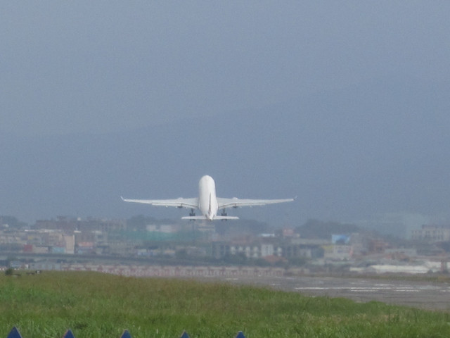 等了很久總算要落地的BR189,算是很準時的到達(靠橋時間幾乎是13:30),另外,從頭上呼嘯而過對我而言真的是全新的體驗;發動機的怒吼也令我感到頭皮發麻。