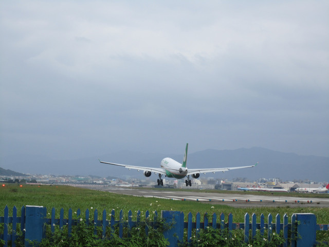 今天首航無緣搭上首航的航班,只能在機場邊看囉!不過照片有點傷眼(只有傻瓜相機嘛),就加減看吧XD