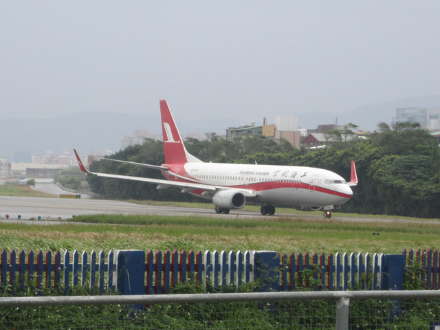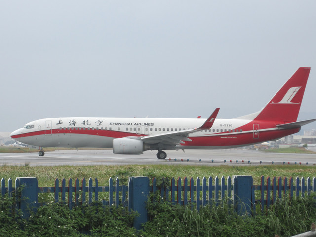 今天上海航空的班機應該是有Delay,我12點到跑道頭時飛機還停在停機坪。這一架是準備要飛往上海浦東的B737-800,比上次看到的上航飛機來的新(有加裝翼端帆應該是比較後期交機的?)
