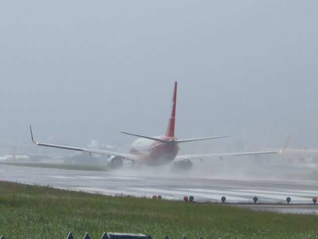 暌違兩個多禮拜,趁著今日學校放假再去賞鳥。昨天根據航空版的資訊知道今天有Orbis和柯林頓專機都要離台,不過因為最近真的很懶惰,然後早上雨下的滿大的,所以中午才慢慢晃到機場跑道頭去...