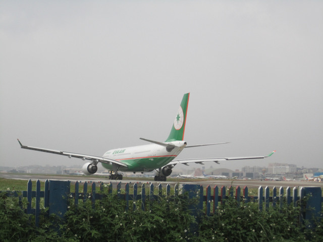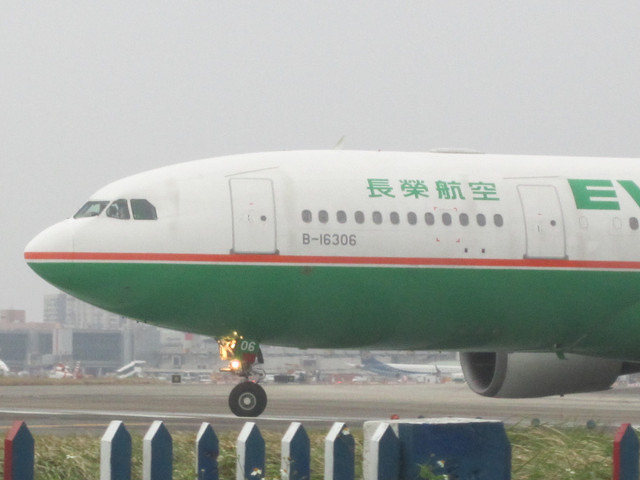 B-16306準備要執飛BR772往上海虹橋的航班。原來一直在猜她會在柯林頓專機前還後,結果還是早了一步起飛。前幾週長榮是放B-16301和B-16307在松山,看起來B-16307回桃園去啦!