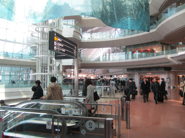 目標ANA Festa在1樓,所以從圖中的電扶梯下到1樓的到達層。
